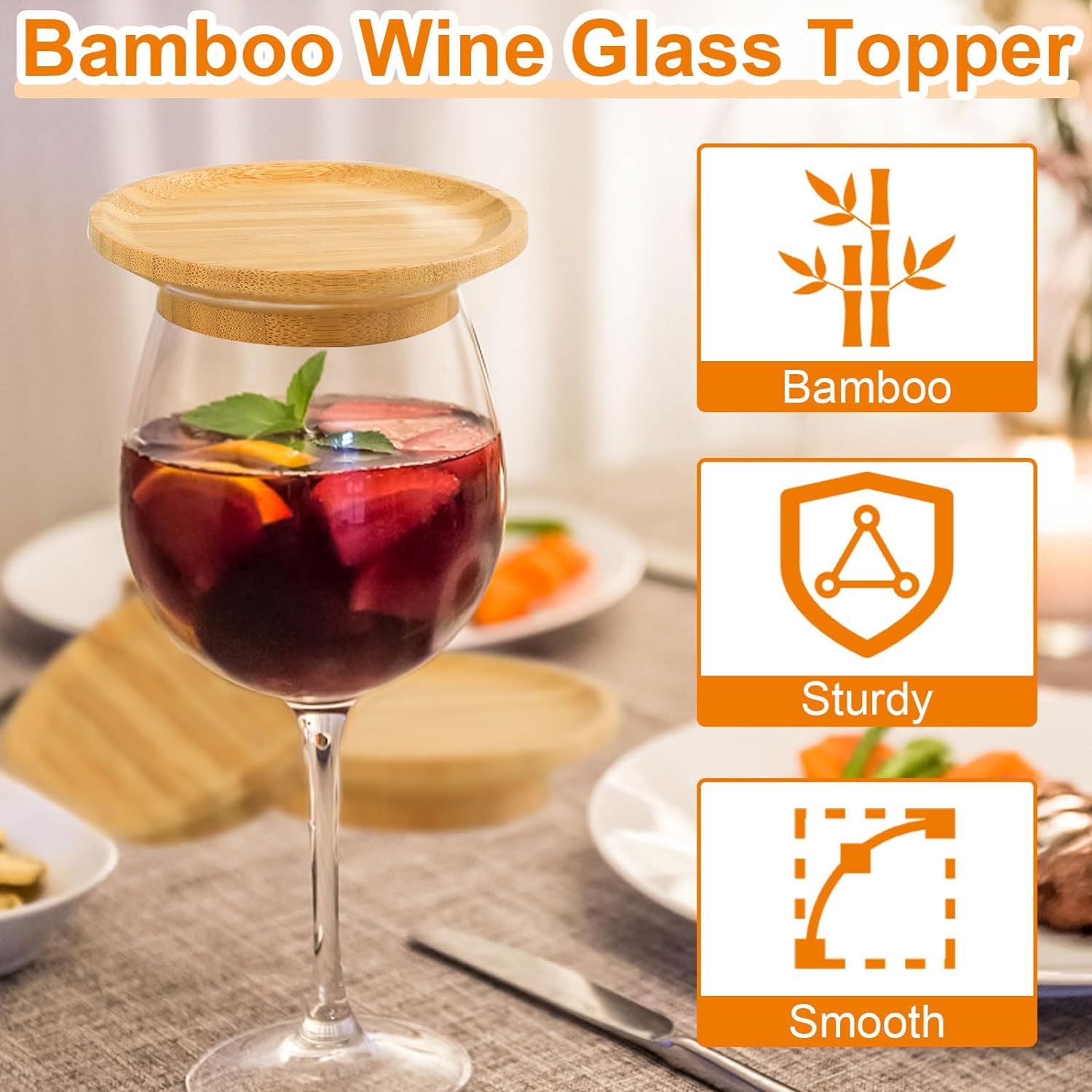 🍷Wide Use: Bamboo charcuterie toppers are great for serving small foods and hors d’oeuvres while keeping your wine clean. Not only can it be used as a coaster for any of your cups. it can also be used as your cup lid to prevent dust from falling into the water.